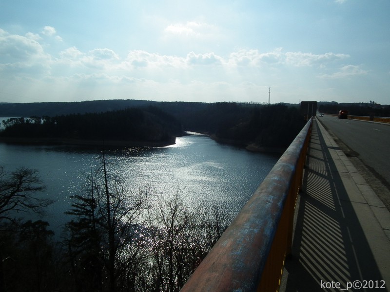 Uvnitř mostu táhne chladný vzduch všemi škvírami, ale krásně to tu voní starým dřevem. Pod námi teče vltavský přítok Teplá Vltava; na slunci se leskne tisíci jiskřičkami. Překvapuje mě šíře vodního toku.
