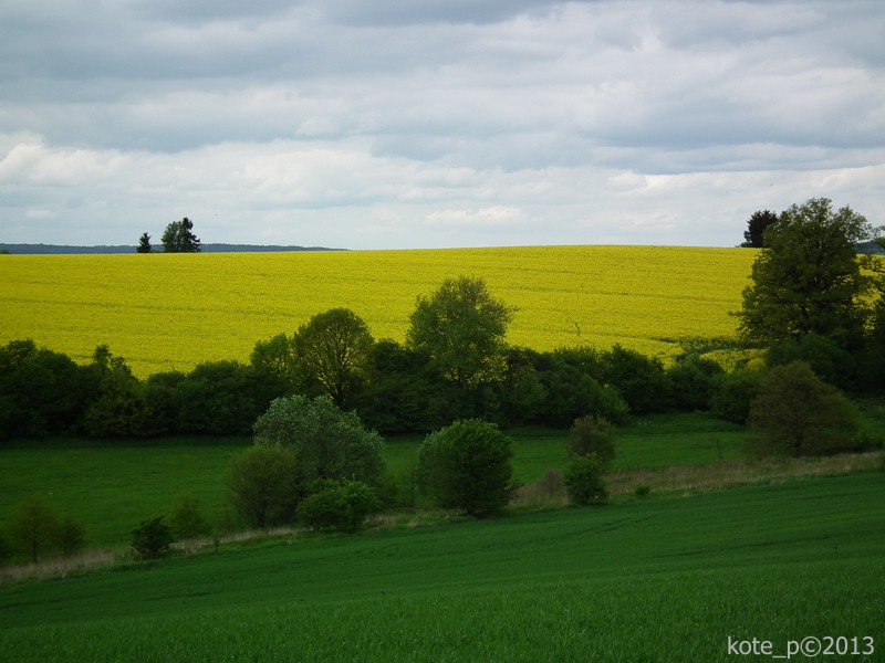 Počasí vypadá slibně, můžeme si dovolit trasu aktuálně mírně prodloužit přes Starec. Těsně před vsí zastavíme na příhodném místě s výhledem na Kdyni. Teď už sluníčko hřeje jako v létě. Všude kolem jsou kvetoucí řepková pole, doslova žlutá záplava. Tohle místo je nabité pozitivní energií, ani se mi odtud nechce.
