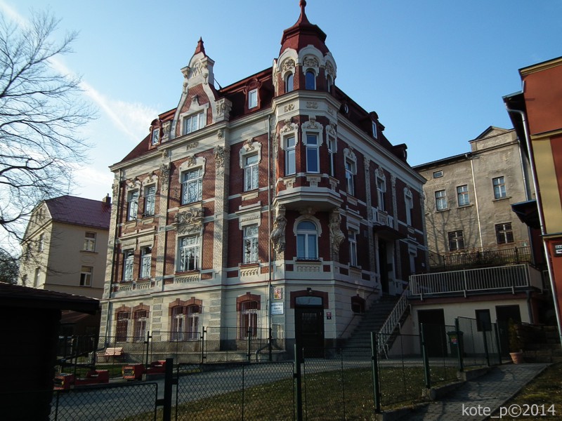 Dva kilometry od Rumburku se nachází čedičový vrch Dymník, na kterém se ve středověku zapalovaly signální ohně, odtud získalo místo svůj název. Na vrchu stojí rozhledna a k ní se teď vydám. Při hledání modré turistické značky míjím krásně zdobený dům. Je to dvoupatrová secesní vila, ve které je umístěna mateřská škola.