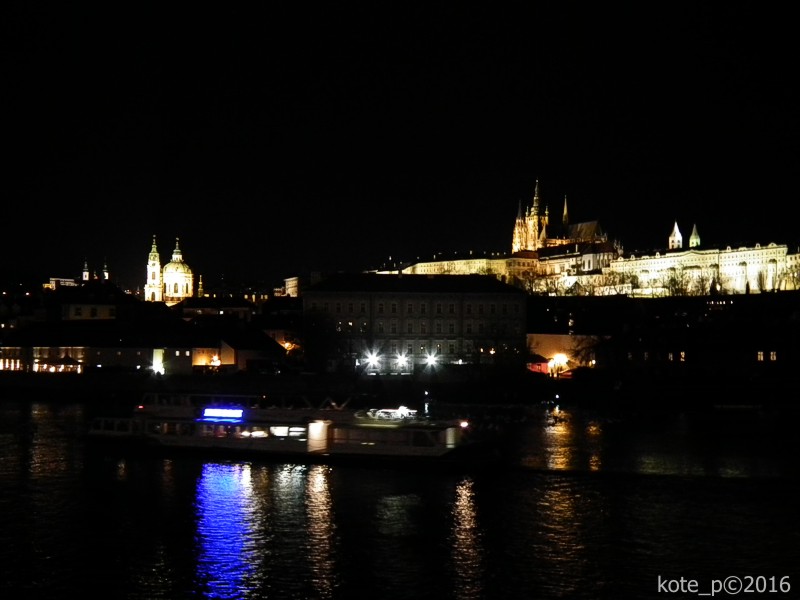 U Rudolfina nám nad hlavou přelétají hejna ptáků; je to skoro jako z katastrofického filmu. Chvíli se zastavíme na nábřeží s vyhlídkou na Karlův most a Pražský hrad. Hladina Vltavy se temně leskne, tu a tam projede modře osvětlený parník. Je čas k návratu; vybíráme si trasu, kde není tolik lidí. Na Havelském trhu už někteří stánkaři balí.