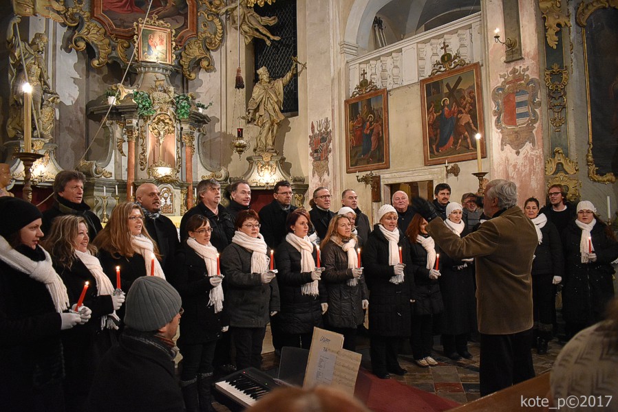 Letos není v kostele ani moc velká zima, ještě nezačalo pořádně mrznout; pár centimetrů sněhu ale snadno dokáže vyčarovat předvánoční atmosféru. Před pátou odpolední se začíná kostel rychle zaplňovat. Pořídím pár fotek a další pak v průběhu koncertu. Podle očekávání jsou fotky o poznání lepší než loni. Ne nadarmo se říká, že kvalita foťáku a objektivu se pozná nejvíc při zhoršených světelných podmínkách.